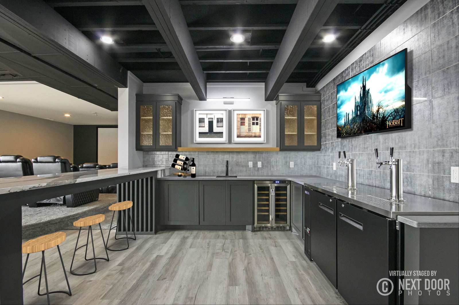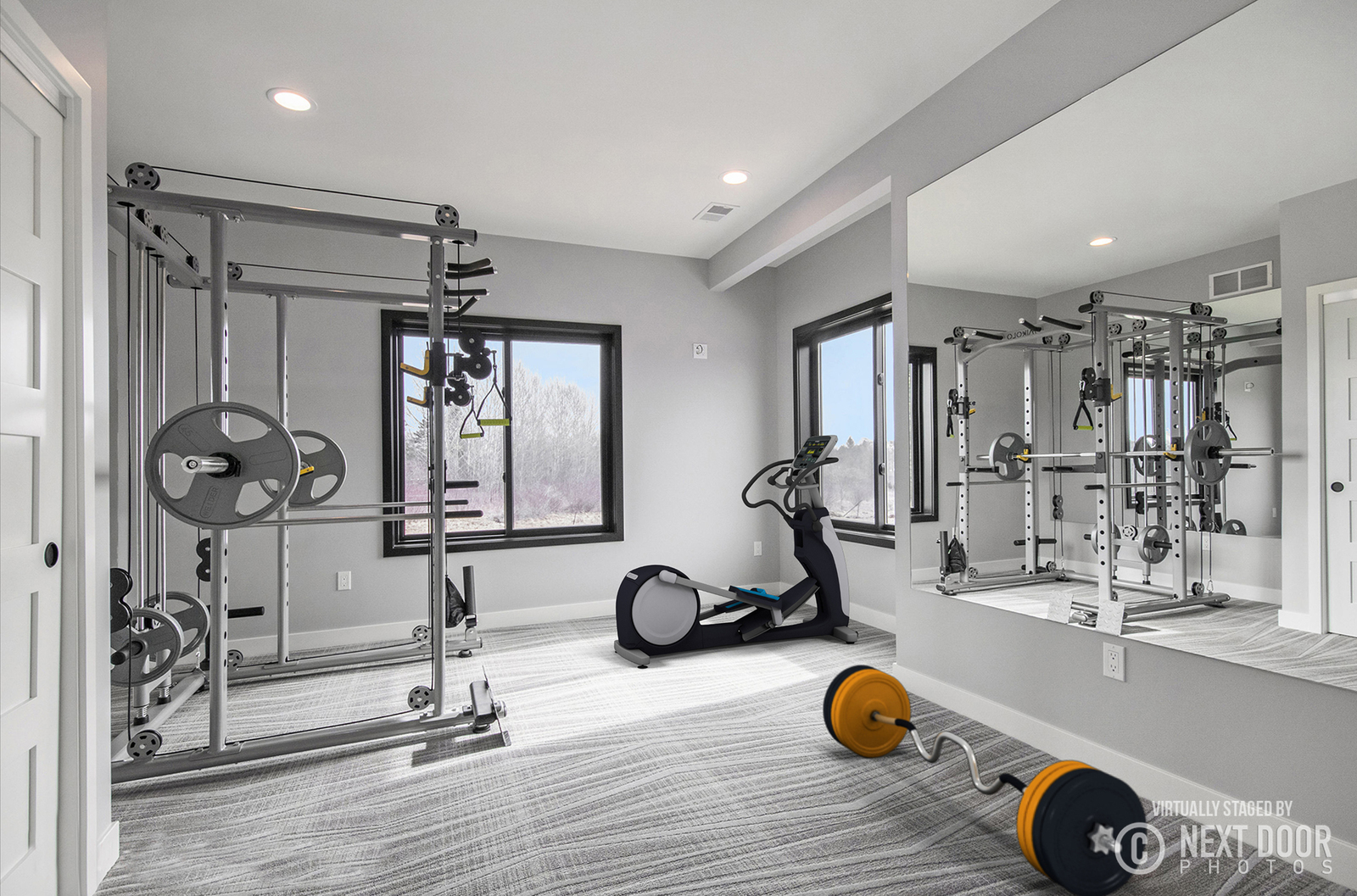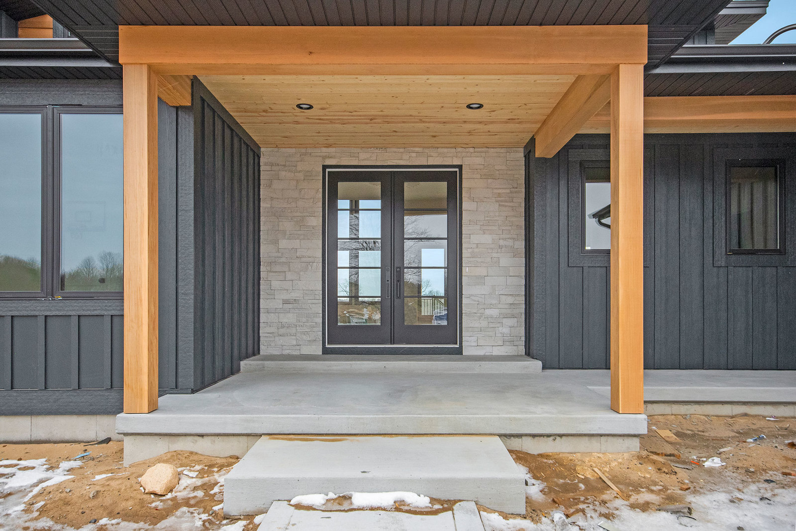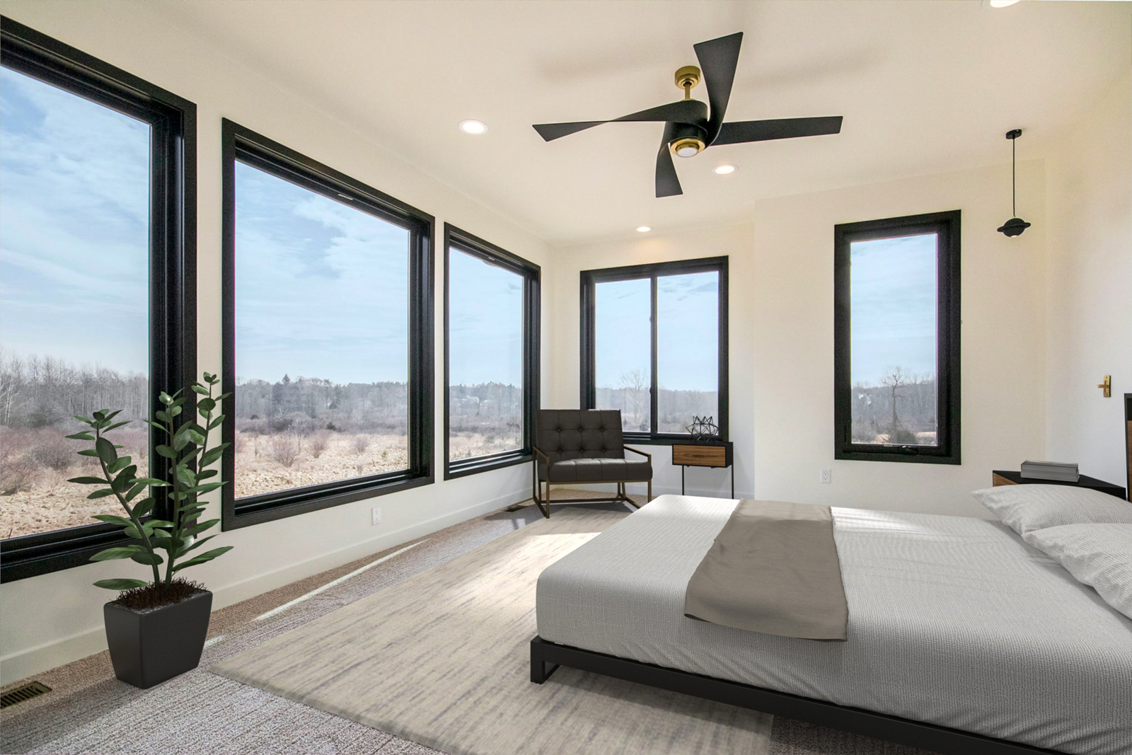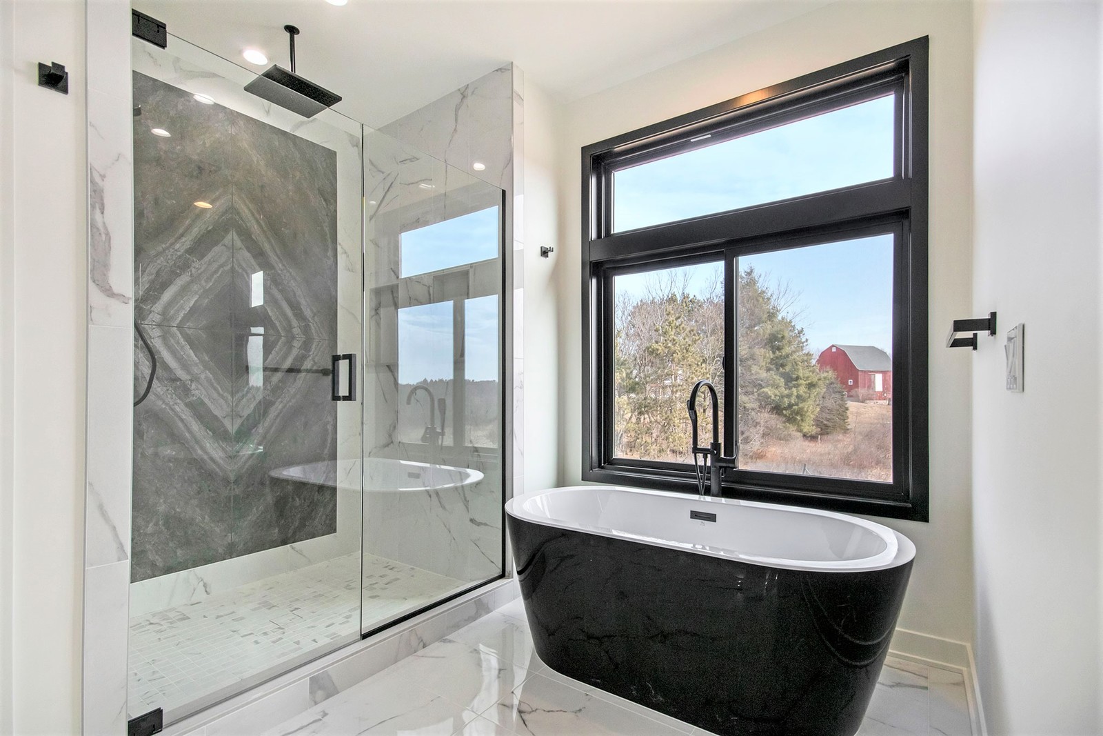 Nestled on 80 acres of rolling hills with a pond and rich wildlife, this stunning home boasts 4,400 sq. ft. of modern design. The two-story-high great room has a floor-to-ceiling black stone fireplace and features a floating stairway with Walnut steps that lead to a spacious office loft. You will find custom cabinetry throughout the home and Cambria quartz countertops. The basement houses the bar, theater room, exercise room, and a junior suite. A fun fact is that this home has a hidden passage into a “secret poker room.”