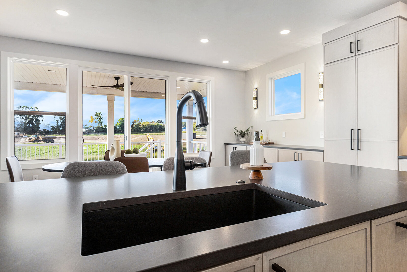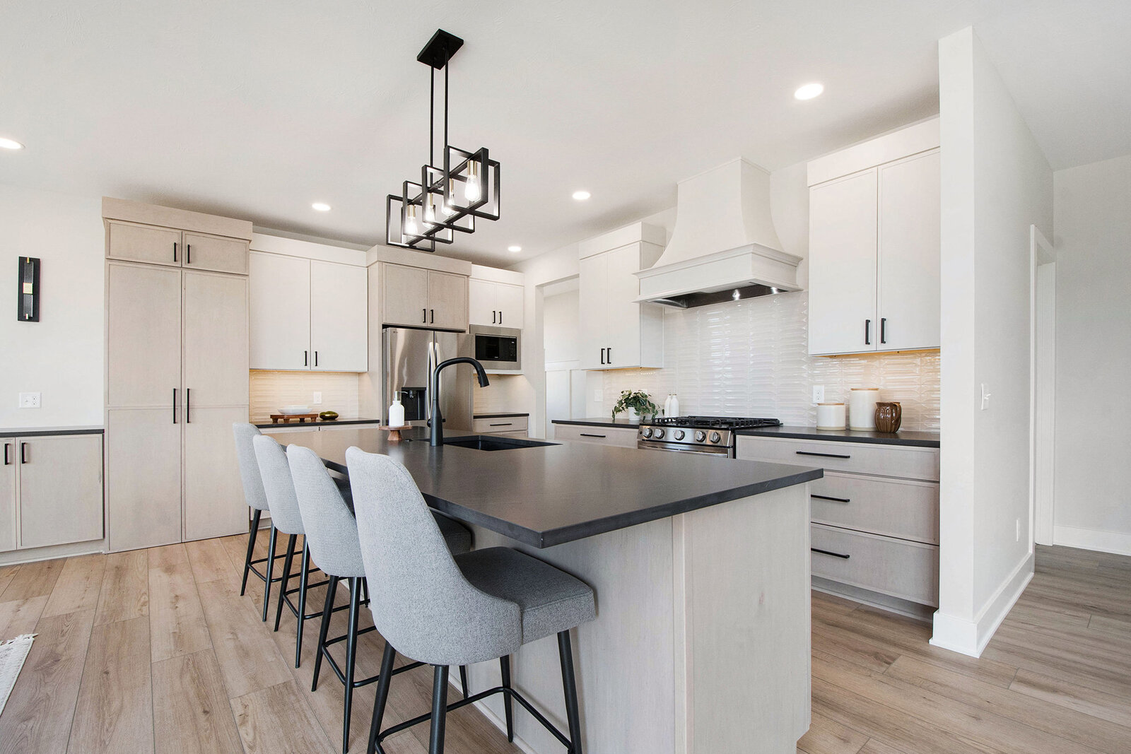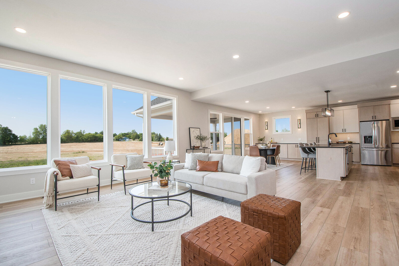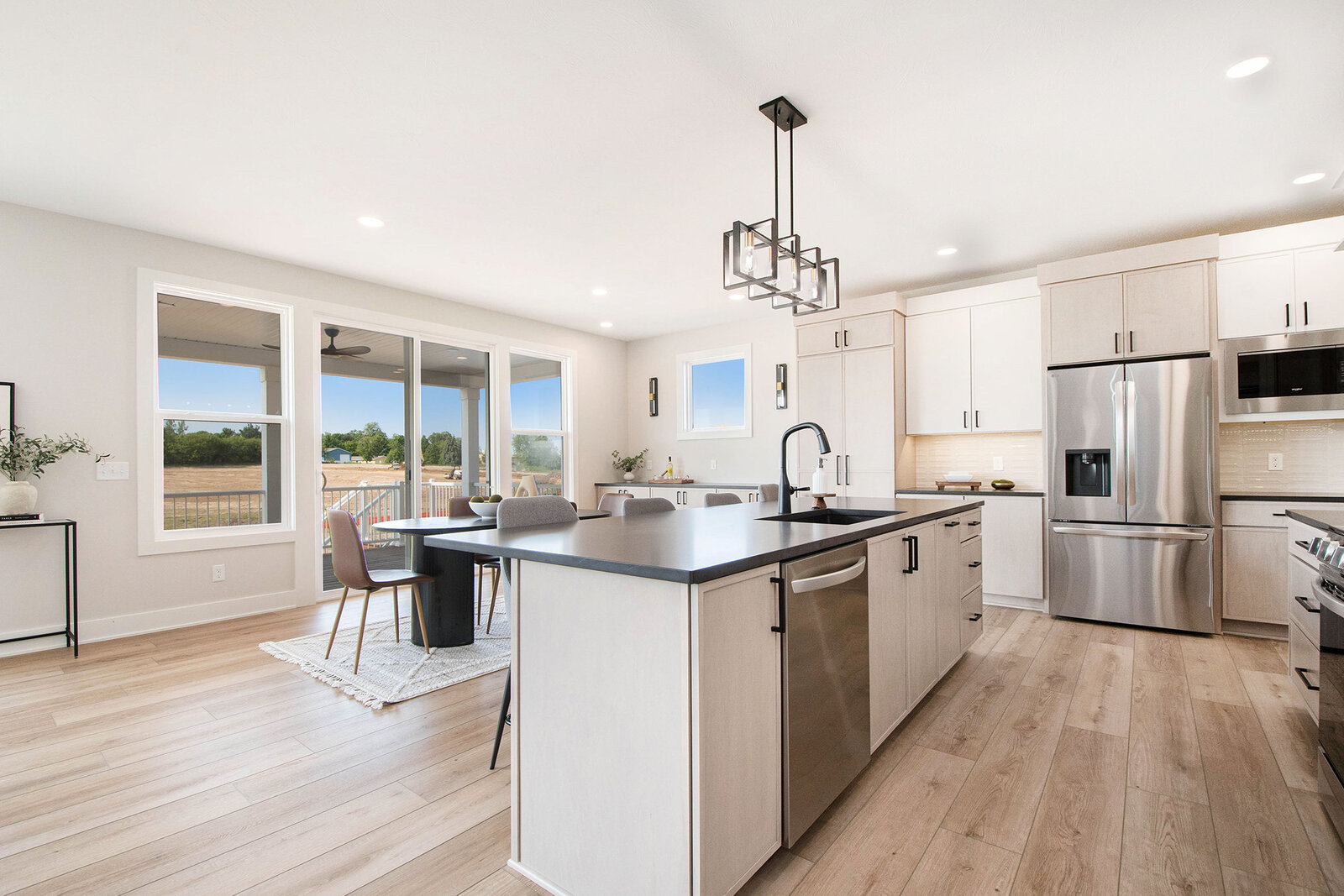 North Cove Builders invites you to experience this stunning walk-out ranch home, meticulously designed for modern living and spacious comfort. The main level is bathed in natural light and the open-concept design seamlessly blends the kitchen, dining, and living areas, making it ideal for both everyday living and entertaining. Additional highlights include a generously sized primary en suite, a second bedroom or office with a full bath, plus a large kitchen island, serving station, and a hidden walk-in pantry! Comfort extends outdoors with a beautiful covered deck, perfect for outdoor dining and large gatherings.