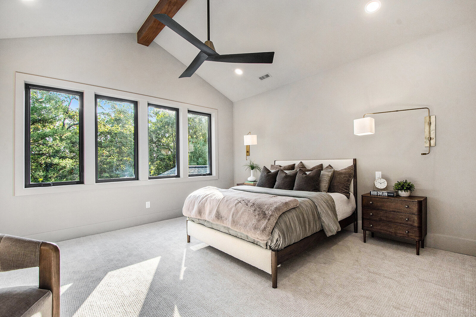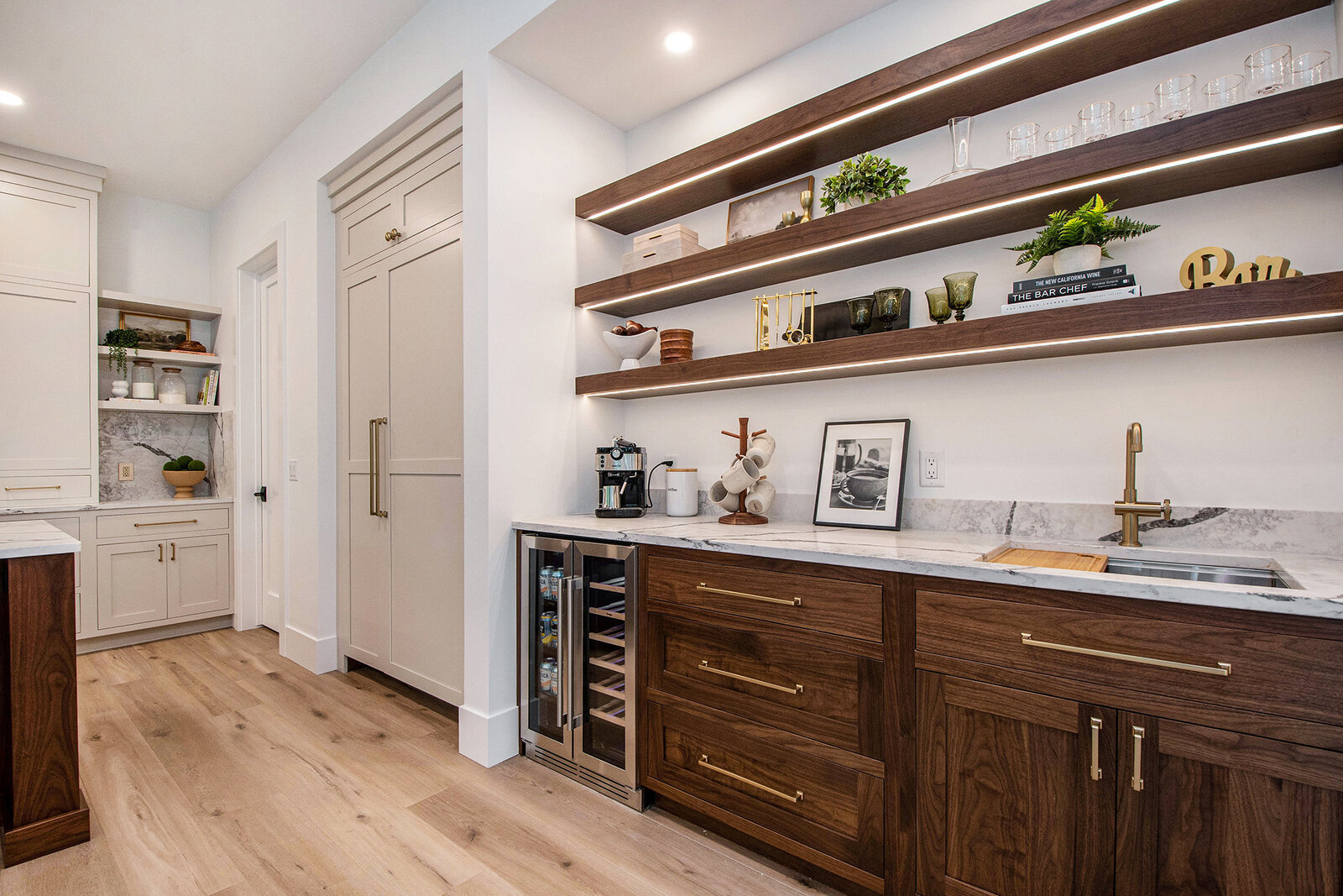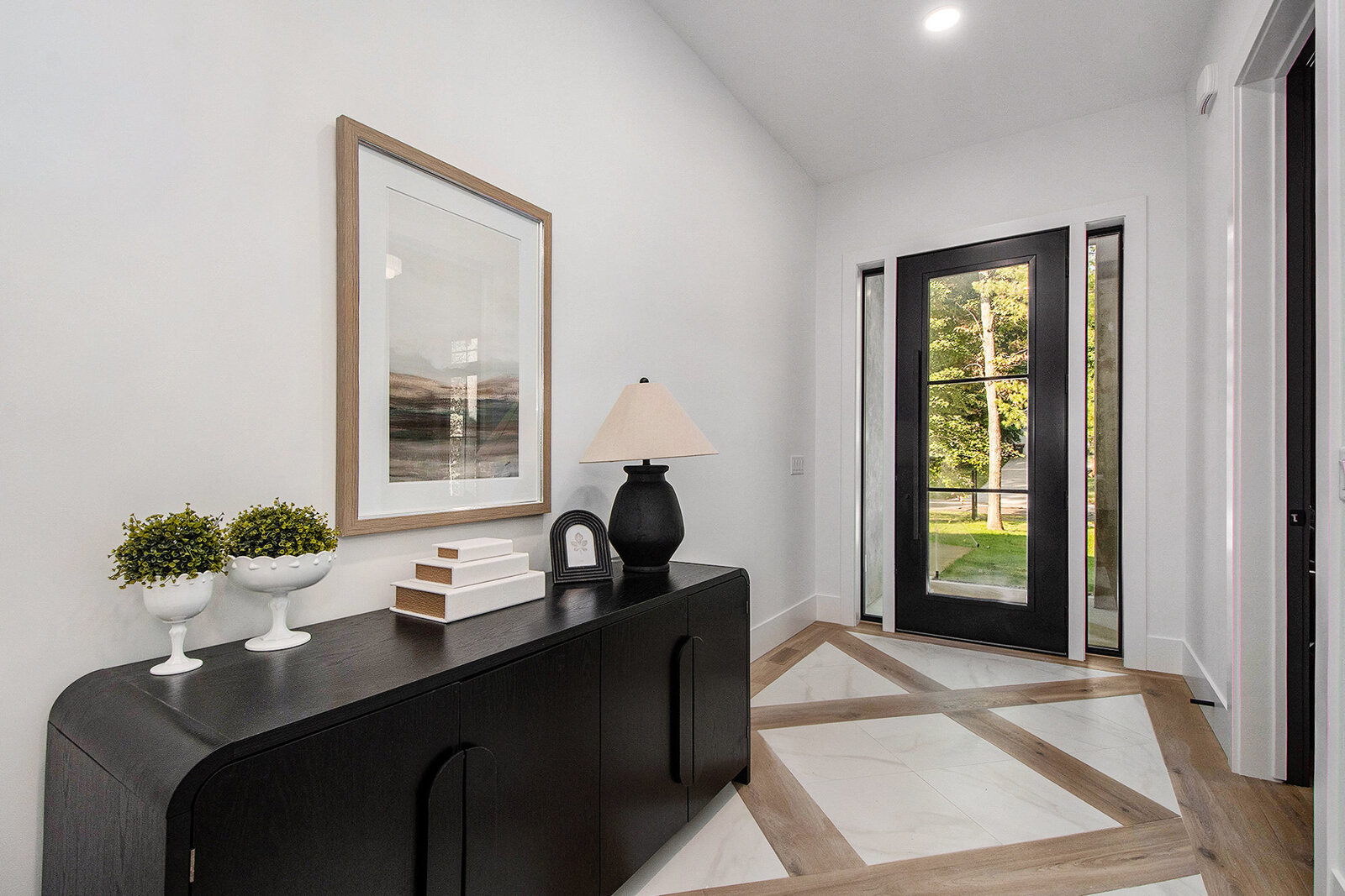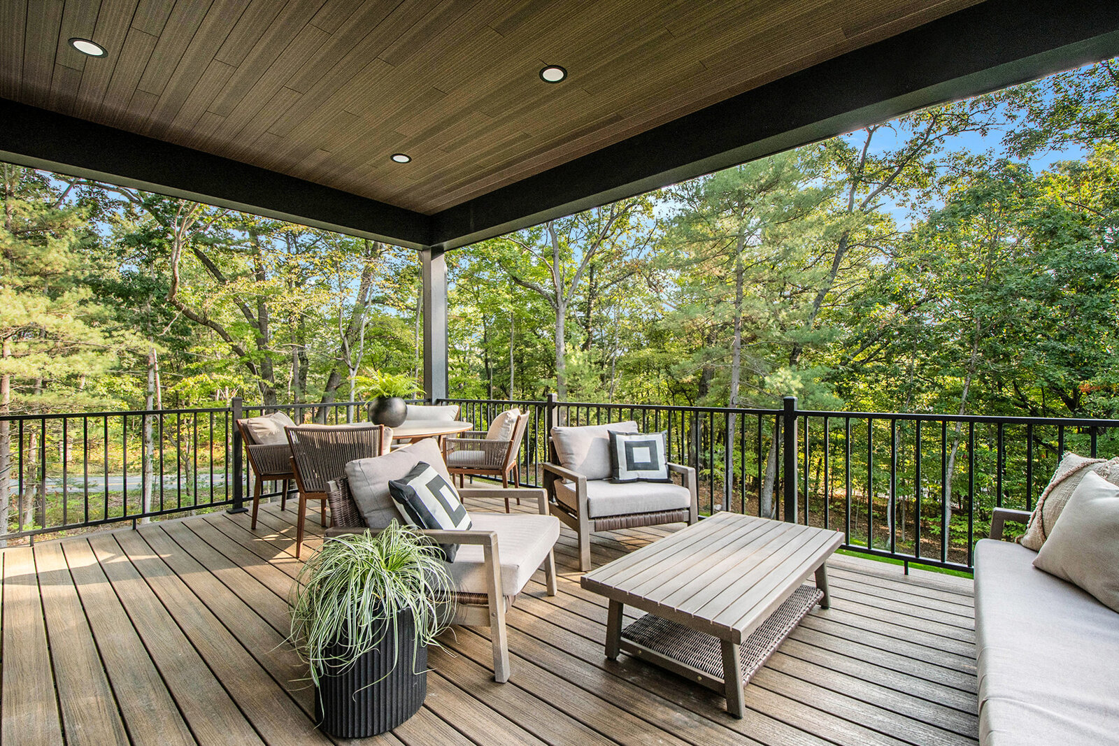 This 5-bedroom + office, 5.5-bathroom home is designed to impress! Step into a sun-drenched living room featuring floor-to-ceiling windows framing uninterrupted wooded views and a cozy fireplace. The open-concept kitchen boasts chef-grade appliances, expansive windows, a walnut center island, and a spacious butler’s pantry that seamlessly connects to the mudroom and attached 3-stall garage. The primary suite features vaulted ceilings and a luxurious en-suite bath with dual vanities, a tiled shower with rainhead and dual shower heads, and heated tile floor in the bathroom. The finished walkout lower level provides even more living space with a spacious rec room, 5th bedroom, additional 1.5 bathrooms, and a 19ft x 19ft bonus area perfect for a golf simulator, home gym, or extra storage.